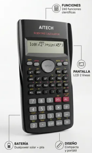 Funciones: Más de 240 funciones, que incluyen cálculos de estadística, fracciones, trigonometría, logaritmos y potencias.